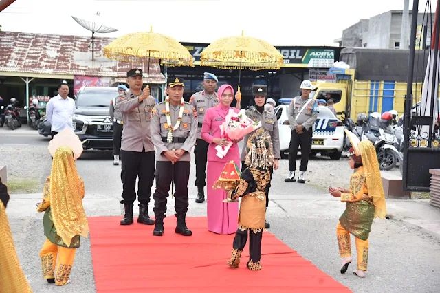 KABAR ACEH | Bireuen - Resmi menjabat sebagai Kapolres Bireuen, AKBP Jatmiko, S.H., M.H., disambut tarian adat Aceh dan tradisi Pedang Pora saat tiba di Mapolres Bireuen, Jum'at 14 Juli 2023 pagi.