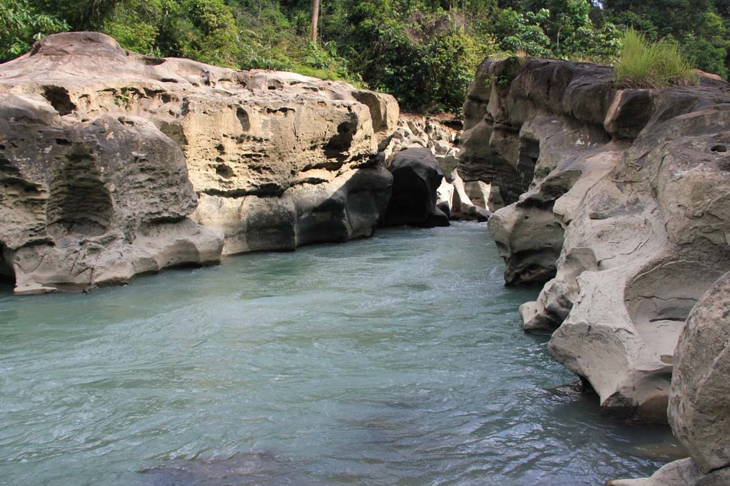 Sungai ini memiliki tebing-tebing bebatuan yang indah pada sisi kanan dan kirinya. Air mengalir deras diantara tebing batu tersebut, belakangan tempat ini menjadi semakin populer setelah keindahan sungai banyak beredar di media sosial. Hal tersebut membuat banyak wisatawan penasaran sehingga pengunjung di tempat ini semakin meningkat setiap harinya.