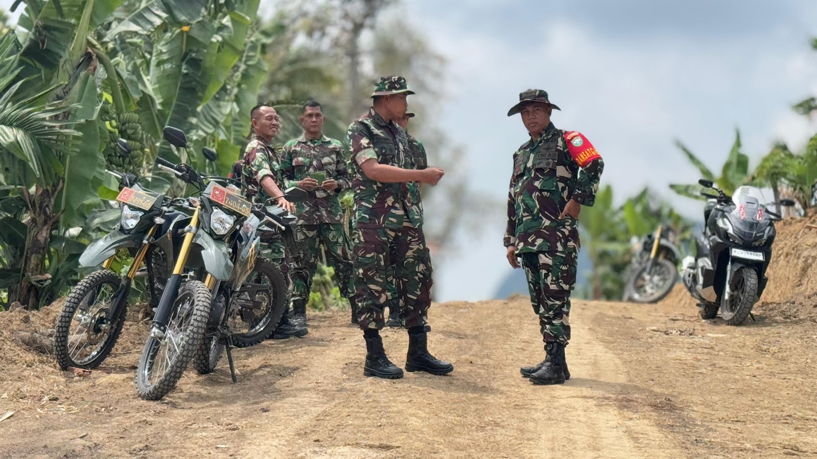 Mereka meninjau langsung beberapa titik pembangunan infrastruktur utama, termasuk perbaikan jalan desa, pembangunan jembatan, serta fasilitas umum lainnya yang menjadi fokus program TMMD ke-123 kali ini.